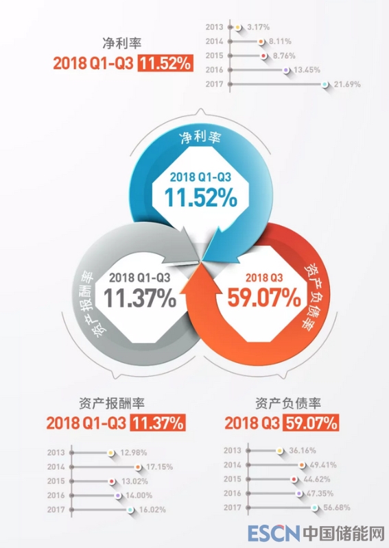 2018年前三季度,隆基實現(xiàn)營業(yè)收入146.71億元,同比增長35.26%;歸屬于母公司的凈利潤16.91億??梢钥闯雎』煞轄I業(yè)收入穩(wěn)步提升,凈利潤一直保持在較好水平,體現(xiàn)了穩(wěn)健的經(jīng)營能力。另外,截至第三季度,隆基總資產(chǎn)升至388.35億;經(jīng)營現(xiàn)金流10.61億,同比增加48.78%;資產(chǎn)負債率59.07%,繼續(xù)保持在行業(yè)合理水平,體現(xiàn)出較強的抗風險能力。