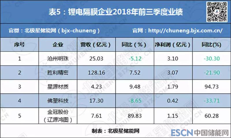 前三季度,鋰電隔膜企業(yè)凈利潤也普遍飄紅,但僅星源材質(zhì)和金冠股份出現(xiàn)正增長,其中星源材質(zhì)凈利潤增幅超過了9成,龍頭地位進(jìn)一步鞏固(詳見表5)。關(guān)于業(yè)績增長原因,星源材質(zhì)表示,公司首次公開發(fā)行股票的募集資金投資項目“第三代高性能動力鋰電隔膜生產(chǎn)線擴(kuò)建項目”中的一條干法隔膜生產(chǎn)線所貢獻(xiàn)的產(chǎn)能,以及公司控股子公司合肥星源新能源材料有限公司濕法隔膜產(chǎn)能的逐步釋放,使得公司前三季度干、濕法隔膜產(chǎn)品累計銷售量較上年同期有所增長。