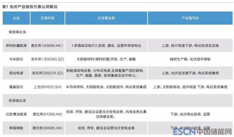 光伏行業(yè)在國家政策鼓勵(lì)下蓬勃發(fā)展了若干年,如今平價(jià)上網(wǎng)時(shí)代的來臨,產(chǎn)業(yè)鏈相關(guān)企業(yè)是否可以利用市場(chǎng)的力量獨(dú)立前行?衡量一個(gè)行業(yè)健康程度,需要認(rèn)真審視該行業(yè)產(chǎn)業(yè)鏈關(guān)鍵環(huán)節(jié)的企業(yè)財(cái)務(wù)狀況,本文選擇產(chǎn)業(yè)鏈中的代表性企業(yè)(表1)——投資商、硅片制造商、組件制造商、逆變器制造商和輔材制造商,從各相關(guān)企業(yè)的利潤(rùn)質(zhì)量、現(xiàn)金流質(zhì)量、資產(chǎn)質(zhì)量和資本結(jié)構(gòu)四個(gè)方面綜合分析其財(cái)務(wù)的健康程度。
