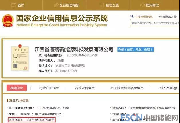 江西通瑞成立于2017年4月7日,產(chǎn)品主要以濕法+涂覆隔膜為主。根據(jù)恩捷股份公告披露,江西通瑞的注冊資本高達(dá)18179.059萬美元(折合人民幣約12.59億元)。這與該公司在國家企業(yè)信用信息公示系統(tǒng)中的登記相一致。
