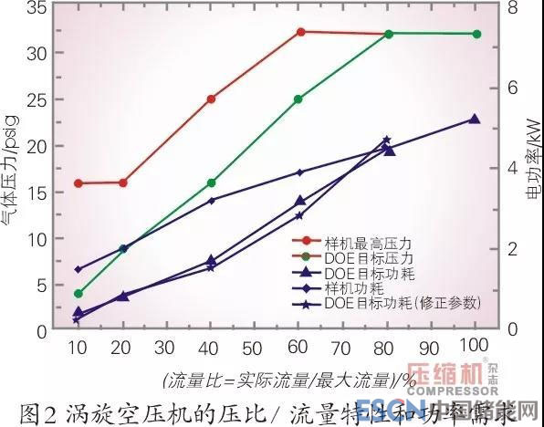 Author D.Little公司所設(shè)計(jì)的渦旋式空壓機(jī)的壓比/流量特性已滿足DOE的要求,其最高壓比達(dá)到3.2。