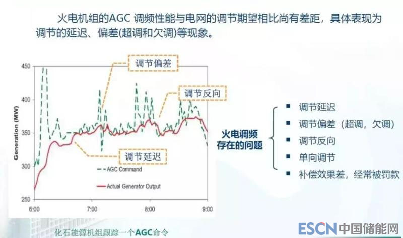 目前,國內(nèi)火電機組的AGC調(diào)頻性能與電網(wǎng)的調(diào)節(jié)期望相比尚有差距,表現(xiàn)為調(diào)節(jié)延遲、偏差(超調(diào)和欠調(diào))等現(xiàn)象。下圖為火電調(diào)頻現(xiàn)狀: