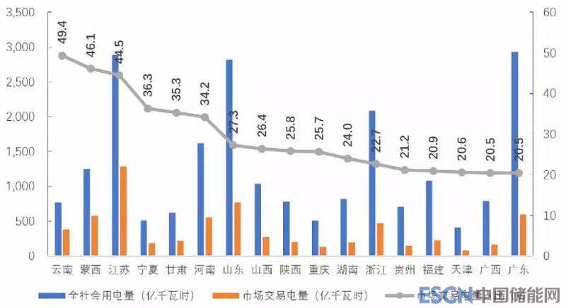 ▲2018年上半年分省區(qū)售電量市場(chǎng)化率圖