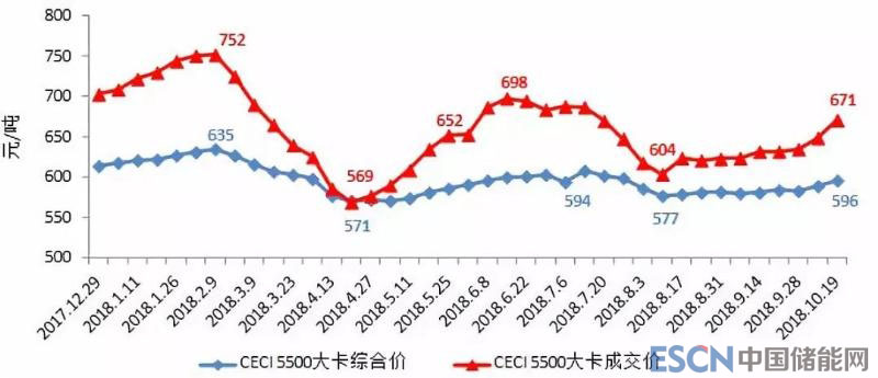 中電聯(lián)發(fā)布的《2018年前三季度全國(guó)電力供需形勢(shì)分析預(yù)測(cè)報(bào)告》顯示:前三季度,電煤價(jià)格總體處于高位波動(dòng)態(tài)勢(shì),根據(jù)中國(guó)沿海電煤采購價(jià)格指數(shù)——CECI沿海指數(shù)顯示,反映電煤采購綜合成本的CECI5500大卡綜合價(jià)前三季度波動(dòng)區(qū)間為571-635元/噸,各期價(jià)格都超過了《關(guān)于平抑煤炭市場(chǎng)價(jià)格異常波動(dòng)的備忘錄》中規(guī)定的綠色區(qū)間上限,國(guó)內(nèi)煤價(jià)持續(xù)高位也導(dǎo)致對(duì)標(biāo)國(guó)內(nèi)煤價(jià)的進(jìn)口煤價(jià)格快速上漲,明顯提高了國(guó)內(nèi)企業(yè)采購成本。