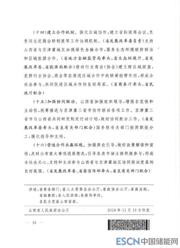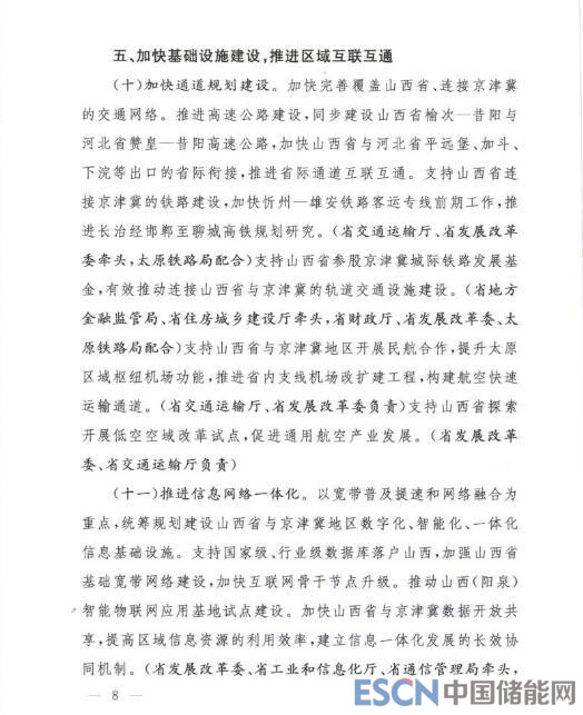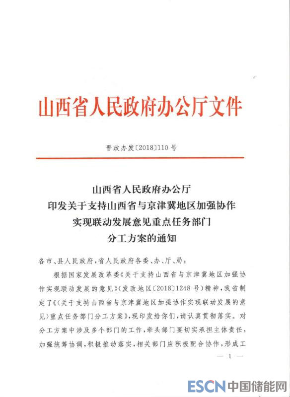 中國儲能網(wǎng)訊:今日山西省印發(fā)《關(guān)于支持山西省與京津冀地區(qū)加強(qiáng)協(xié)作實(shí)現(xiàn)聯(lián)動發(fā)展意見重點(diǎn)任務(wù)部門分工方案的通知》。2018年8月30日,國家發(fā)改委印發(fā)《關(guān)于支持山西省與京津冀地區(qū)加強(qiáng)協(xié)作實(shí)現(xiàn)聯(lián)動發(fā)展的意見》,為了落實(shí)發(fā)改委意見精神,明確職責(zé)、細(xì)化任務(wù),山西省計劃在“生態(tài)”、“能源”、“科技創(chuàng)新”、“醫(yī)療教育”等多個領(lǐng)域加強(qiáng)與京津冀協(xié)同合作,促進(jìn)雙方共同發(fā)展。