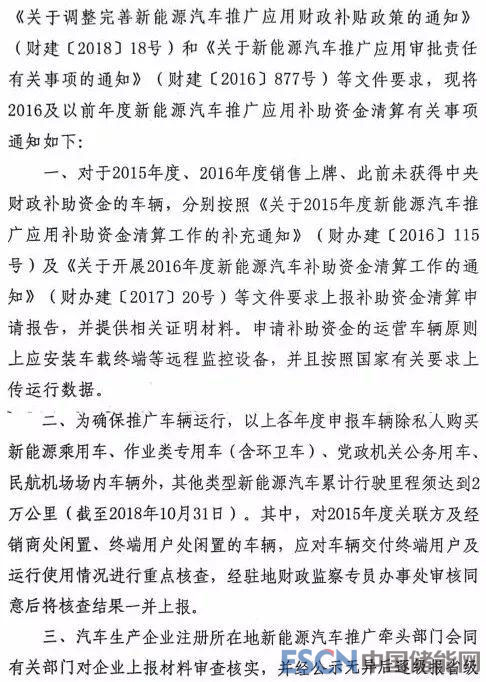 中國儲能網(wǎng)訊:財(cái)政部發(fā)布關(guān)于開展2016年及以前年度新能源汽車推廣應(yīng)用補(bǔ)助資金清算的通知,要求: