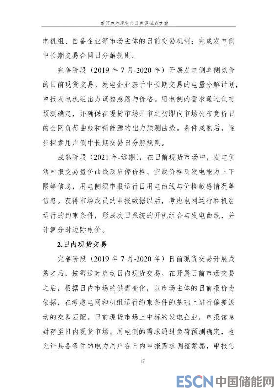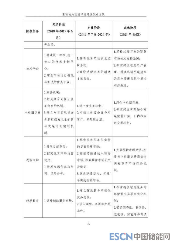 近期目標:逐步完善現(xiàn)貨市場建設的各項基礎條件,在電力多邊市場的框架下,建立中長期交易電量日分解機制,完善發(fā)電計劃編制,為構(gòu)建發(fā)電側(cè)單側(cè)競爭的日前現(xiàn)貨市場創(chuàng)造條件;初步建立新能源市場化消納機制;啟動調(diào)峰輔助服務市場運行;開展日前替代、抽蓄交易等準現(xiàn)貨交易品種;完善技術(shù)支持系統(tǒng),建立交易、調(diào)度、營銷、財務有機銜接并與監(jiān)管系統(tǒng)互聯(lián)的信息系統(tǒng);適時啟動現(xiàn)貨市場模擬運行,為試運行奠定技術(shù)基礎。