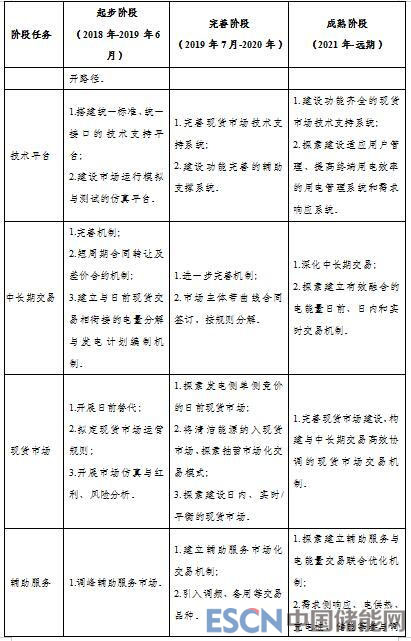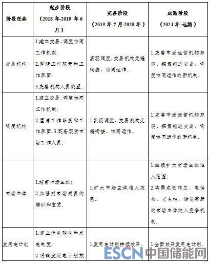 起步階段(2018年-2019年6月)建立新能源與常規(guī)火電機組、自備企業(yè)等市場主體的日前交易機制;完成發(fā)電側(cè)中長期交易合同日分解規(guī)則。