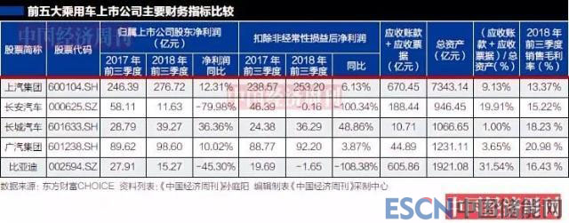 從毛利率指標看,五大乘用車上市公司中,長安汽車高于去年,上汽集團、長城汽車和前兩年基本接近,廣汽集團高于2016年。唯獨比亞迪,今年前三季度銷售毛利率16.43%,同比下滑3.43個百分點,在2015年—2017年保持連續(xù)三年高銷售毛利率后,重回2014年的低位。