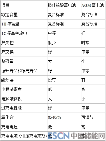GFL-VRLA蓄電池與AGM-VRLA蓄電池的性能比較見(jiàn)表1。