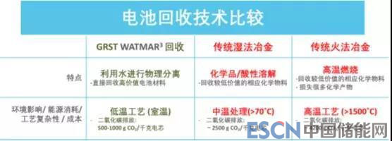 研發(fā)電池的同時,GRST就考慮到了后續(xù)電池回收問題,同步研發(fā)新型電池回收技術,而其與傳統(tǒng)回收方法相比也可謂獨樹一幟。