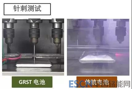 除此外,GRST還通過材料改造和結構設計,大大提高了電池的安全性。在針刺測試中,GRST鋰電池完全保持穩(wěn)定,而同材料體系下,傳統(tǒng)電池發(fā)生冒煙起火現(xiàn)象。而GRST針對礦用產(chǎn)品所開發(fā)的高容量軟包電池,可以完全通過10V過充的苛刻要求,僅出現(xiàn)鼓包情況,表面溫度低于150?C,而同材料體系下,傳統(tǒng)電池發(fā)生冒煙起火現(xiàn)象。