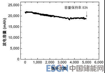 根據(jù)不同應用領域,GRST電池的預期壽命范圍達3000-5000次循環(huán)。對于儲能系統(tǒng)(ESS),循環(huán)5000次后容量保持率>80%;對于電動汽車,循環(huán)3000次以后容量保持率>80%;對于消費類電池產(chǎn)品和電動工具,循環(huán)1000-1500次后容量保持率>80%。