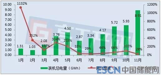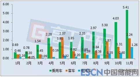 2018年1-11月新能源汽車(chē)電池裝機(jī)總電量分析