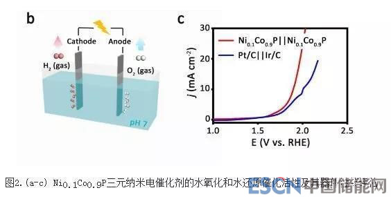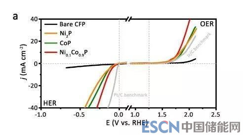 近期,中國科學(xué)技術(shù)大學(xué)俞書宏教授團隊和高敏銳教授團隊采用電化學(xué)沉積和固相磷化兩步反應(yīng),設(shè)計并成功制備了鎳摻雜的磷化鈷三元納米片電催化劑,在中性條件下同時展現(xiàn)出優(yōu)異的水還原和氧化電催化活性和穩(wěn)定性。