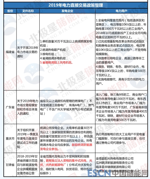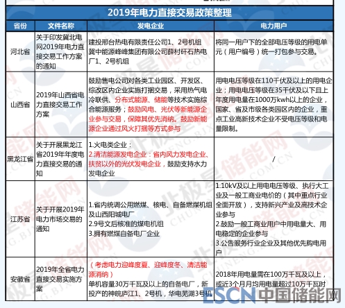 不僅是山西省,近期多個省份發(fā)布了2019年電力市場交易通知,其中都有明確提到新能源發(fā)電可作為發(fā)電企業(yè)參與電力交易,北極星儲能網(wǎng)梳理了這些電力交易文件,詳表如下:
