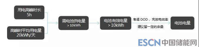 在選擇電池容量時(shí),需要考慮的就是電池在離網(wǎng)情況下單獨(dú)供應(yīng)所需要的電量(假設(shè)晚間停電,無PV)。