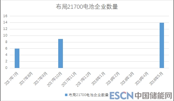 從業(yè)內(nèi)媒體報(bào)道的數(shù)據(jù)來看,國內(nèi)布局21700電池的企業(yè)數(shù)量由2017年7月份的6家上升到今年5月份的14家,國內(nèi)21700的卡位戰(zhàn)號(hào)角似乎已經(jīng)吹響。