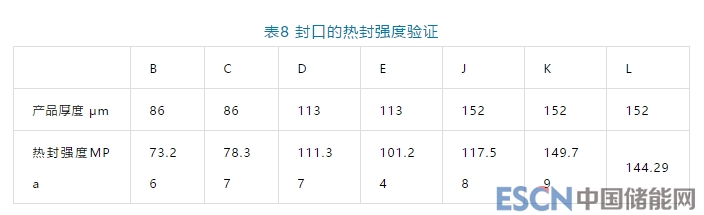 表7 耐電解液性能驗(yàn)證:熱封層與鋁層的剝離力