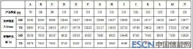 從表1可以看出,拉伸強(qiáng)度、斷裂伸長(zhǎng)率作為薄膜材料力學(xué)性能的重要指標(biāo),其結(jié)果的差異對(duì)鋰電池制造過程中的沖壓、折邊等工藝的影響較大,因此將其納入標(biāo)準(zhǔn)具有充分必要性。