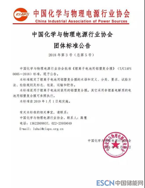 中國(guó)化學(xué)與物理電源行業(yè)協(xié)會(huì)團(tuán)體標(biāo)準(zhǔn)《鋰離子電池用鋁塑復(fù)合膜》編制說明