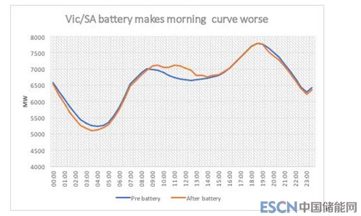 令人失望的一點是,如果電池確實具有充電/放電曲線。如上所述,它們會使早晨電力高峰變得更糟。這是因為電池儲能系統(tǒng)將在早上減少已經(jīng)很低的最低電力需求。