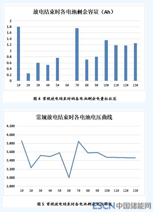 當停止放電時,所有電池的電壓已開始正常反彈,但2#和6#電池的電壓反彈速度遠遠超過其它電池,很快就上升到3.9V左右,進一步證實了2#和6#電池衰減非常嚴重。