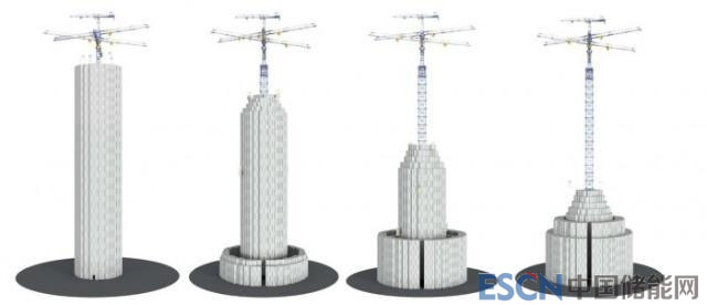 想象一個普通的彈簧,如果你用手指纏繞那個彈簧,你就會為其加入勢能。當你釋放它時,就可以釋放出能量。將此原理應用于可堆疊混凝土砌塊塔,六臂起重機的作用就如同那根手指。