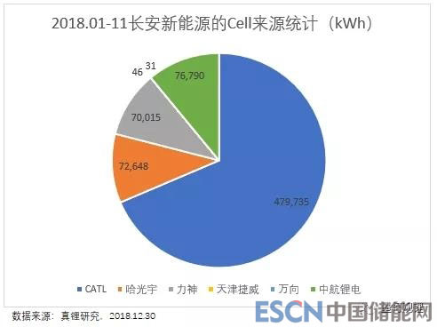 長(zhǎng)安新能源作為前11個(gè)月的第8大Pack廠(chǎng),所需Cell來(lái)源相對(duì)分散的同時(shí)也較為集中,具體見(jiàn)下圖:長(zhǎng)安新能源共有480MWh的Cell來(lái)自CATL,占比68.61%;來(lái)自天津力神、中航鋰電和哈爾濱光宇的Cell量相差不大,均為70多MWh,占比也均在10%點(diǎn)多;捷威動(dòng)力和萬(wàn)向開(kāi)始打入長(zhǎng)安新能源的市場(chǎng),但目前供應(yīng)量還非常少。