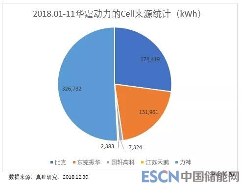 華霆?jiǎng)恿ψ鳛榈?0大Pack廠(chǎng)商,所需Cell來(lái)自5家廠(chǎng)商:其中天津力神供應(yīng)了327MWh的Cell,占比50.83%,是其最大的Cell供應(yīng)商;比克排在第2供應(yīng)了174MWh,占比27.13%;東莞振華供應(yīng)了132MWh,占比20.53%;另有國(guó)軒高科和江蘇天鵬有少量供應(yīng)。