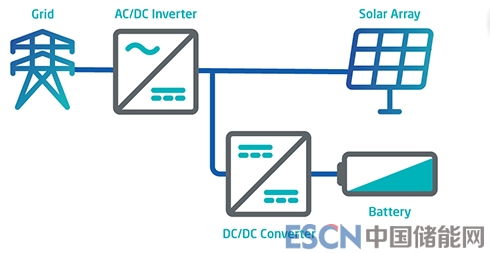 太陽能+儲能共址部署可以是交流耦合,其中儲能系統(tǒng)和太陽能發(fā)電系統(tǒng)位于同一位置,但不共用逆變器。也可以采用直流耦合系統(tǒng),其中太陽能發(fā)電系統(tǒng)和儲能系統(tǒng)耦合在共用雙向逆變器的直流側(cè),其項目成本可以分擔和平衡。根據(jù)NREL公司的一項研究,到2020年,對于共址部署交流耦合和共址部署直流耦合太陽能+儲能來說,系統(tǒng)平衡成本分別降低30%和40%。