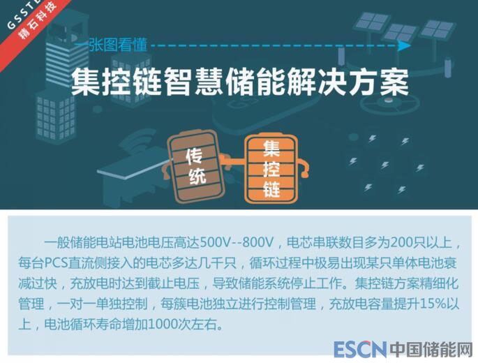 集控鏈解決方案具有完善的管控,精準(zhǔn)定位,快速發(fā)現(xiàn)問題;故障電池智能隔離,不影響系統(tǒng),可靠性高;電池更換方便,故障修復(fù)快;集中功率變換單元接入交流電網(wǎng),穩(wěn)定性好,安全性高,諧波含量少,電能質(zhì)量高等特點(diǎn)。