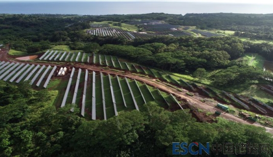 部署在考艾島南部海岸丘陵地帶的太陽(yáng)能發(fā)電設(shè)施和電池儲(chǔ)能系統(tǒng)