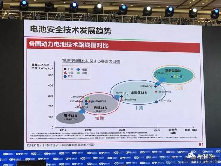 對(duì)比各國動(dòng)力電池技術(shù)路線圖來看,短期發(fā)展是液態(tài)電解液的鋰離子電池,未來會(huì)向固態(tài)電池方向發(fā)展。