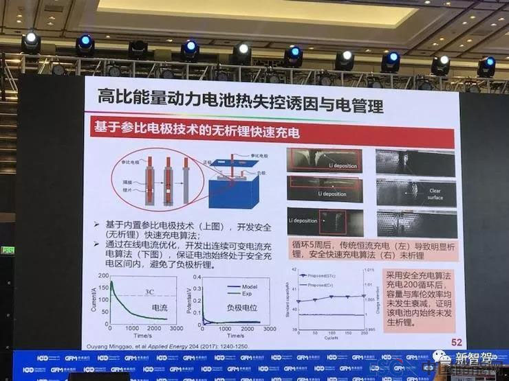 為了解決此問題,電池安全實(shí)驗(yàn)室開發(fā)了基于參比電極的無析鋰快充技術(shù),把負(fù)極的電位控制在零以上(零以下會(huì)析鋰),再增加一個(gè)三電極,就可實(shí)現(xiàn)無析鋰快充技術(shù)。該技術(shù)應(yīng)用后沒有發(fā)生析鋰現(xiàn)象,而且能夠加快充電速度,此外在三電基礎(chǔ)上,還可以基于模型進(jìn)行反饋和觀測(cè)。