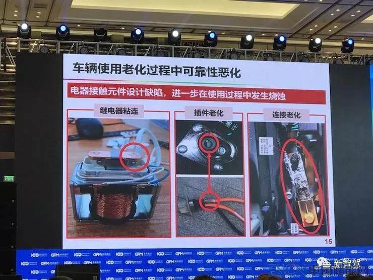 車輛使用過程中可靠性降低,全生命周期中防水效果不佳。通常電池的密封性要通過IP67標(biāo)準(zhǔn),但車輛長時(shí)間使用后,密封性變差,車輛進(jìn)水,造成短路。另一方面,電池激光焊接的接頭內(nèi)部易出現(xiàn)空隙,導(dǎo)致阻抗增加,進(jìn)而發(fā)熱產(chǎn)生高溫點(diǎn),最終引起熱失控。還包括電池系統(tǒng)和充電機(jī)高壓電器老化,充電時(shí)接觸器經(jīng)常開斷,造成接觸器表面高溫?zé)龘p或者粘連。