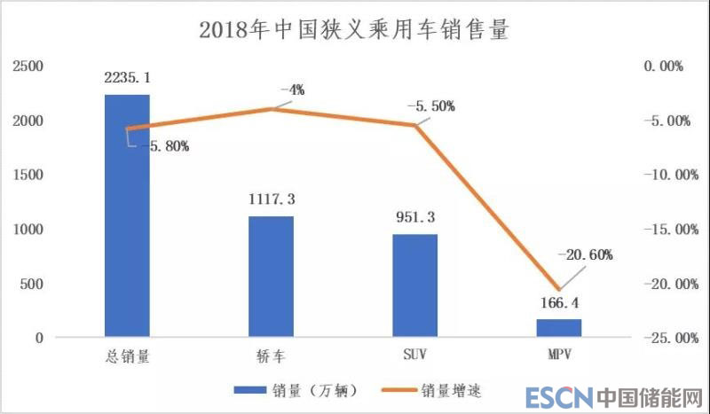 來自乘用車市場信息聯(lián)席會(huì)發(fā)布的數(shù)據(jù)顯示,2018年狹義乘用車(轎車、SUV、MPV)銷量為2235.05萬輛,較上年同期減少5.8%,其中轎車銷量下滑4%、MPV下滑20.6%、SUV下滑3.1%,為1990年代以來首次年度下滑。