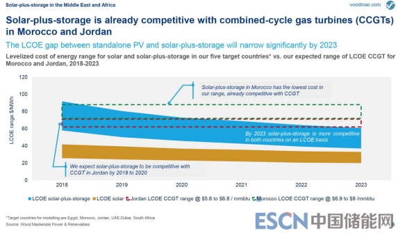 報(bào)告指出,“對(duì)于像摩洛哥和約旦這樣的天然氣貧乏的國(guó)家,太陽(yáng)能+儲(chǔ)能項(xiàng)目將受到減少對(duì)昂貴的天然氣進(jìn)口依賴需求的推動(dòng)?!?