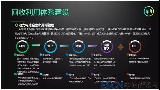 威馬的電池回收利用體系主要由研發(fā)環(huán)節(jié)、生產(chǎn)環(huán)節(jié)、銷售環(huán)節(jié)、回收環(huán)節(jié)、溯源五個(gè)板塊構(gòu)成。