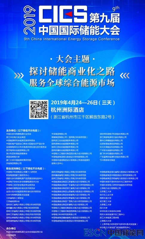 中國儲(chǔ)能網(wǎng)訊:經(jīng)中國國際儲(chǔ)能大會(huì)組委會(huì)確認(rèn),惠州億緯鋰能股份有限公司(以下簡稱“億緯鋰能”)決定聯(lián)合主辦2019年第九屆中國國際儲(chǔ)能大會(huì) (大會(huì)簡稱“CIES2019”),本次大會(huì)主題為“探討儲(chǔ)能商業(yè)化之路,服務(wù)全球綜合能源市場(chǎng)”,將于4月24-26日在杭州洲際酒店隆重召開。