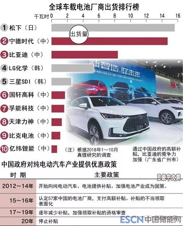 “中國最近的(純電動汽車相關)政策向淘汰技術實力低下企業(yè)的方向轉變。必須在(2020年的)補貼制度取消之前進一步提高競爭力”,一名比亞迪的高管透露出危機感。比亞迪在全球車載電池市場上份額排在第3。