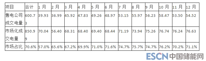 除部分電量較小、對電價不敏感的小微用戶自主選擇暫不參與交易外,其他大工業(yè)用戶均參與了電力市場化交易,全年共成交電量850.99億千瓦時,同比增長21.03%,占全省大工業(yè)用電量的94.67%,占全部用電量的62.74%。