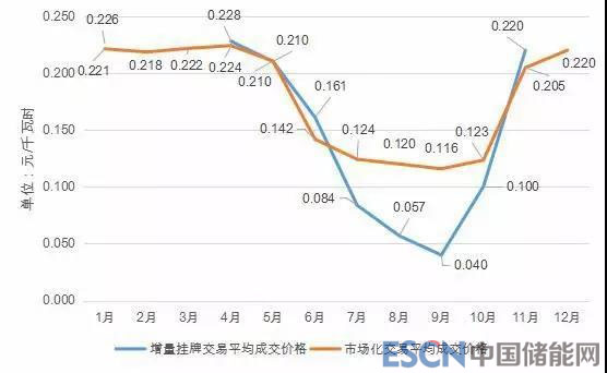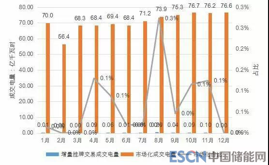 2018年,為鼓勵用戶擴(kuò)大生產(chǎn)增加用電量,尤其是汛期多消納水電,《方案》中設(shè)置了增量掛牌交易。其中2018年1-4月以2017年1-4月用電平均值為基數(shù),2018年5-12月以2017年5-12月用電平均值為基數(shù)。增量掛牌交易作為集中市場中無最高最低限價的品種,整體成交規(guī)模較小,2018年全年共成交0.61億千瓦時,僅占市場化成交電量的0.07%,平均成交價格每千瓦時0.13406元。6-10月成交0.35億千瓦時,平均成交價每千瓦時僅0.07 元,遠(yuǎn)低于其他交易品種成交均價。從實(shí)際效果來看,增量掛牌交易的成交電量較小,主要原因:一是在多年市場化交易的激勵下,大部分用戶已經(jīng)充分生產(chǎn),新增用電量不多;二是增量掛牌交易的條件、考核都十分嚴(yán)格,用戶即使有增量,但也不選擇通過增量掛牌交易成交,以免生產(chǎn)波動導(dǎo)致被考核;三是雖然增量掛牌交易不受限價,但其他交易品種的成交價格也已經(jīng)能充分滿足用戶的電價訴求,用戶選擇參加增量掛牌交易的意 愿不強(qiáng)。
