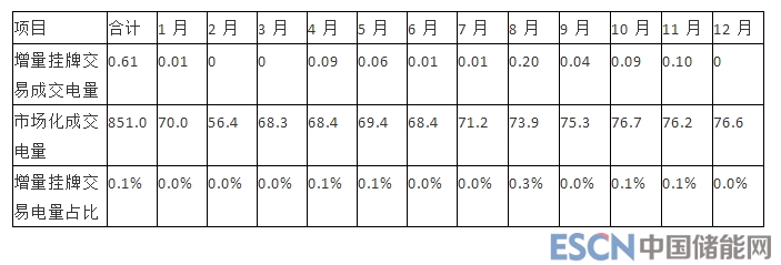 表 2-16:2018 年月度增量掛牌交易成交電量統(tǒng)計(jì)(單位:億千瓦時)