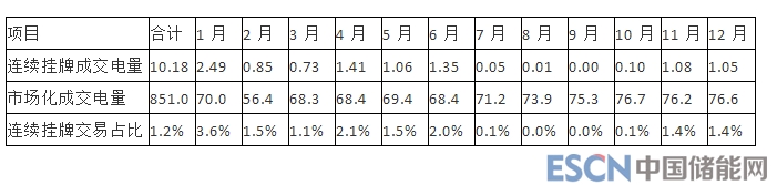 表 2-14:2018 年月度連續(xù)掛牌交易成交電量統(tǒng)計(jì)(單位:億千瓦時)