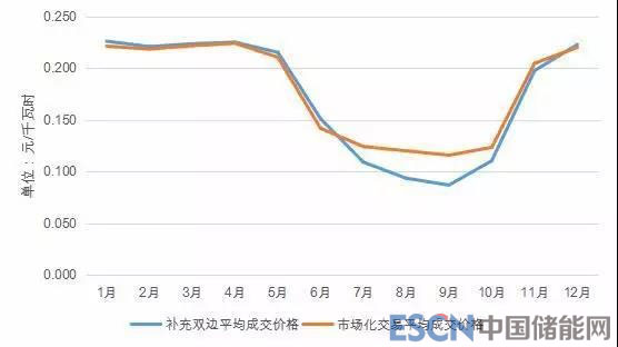 由于雙邊協(xié)商補(bǔ)充交易為每月最后開展的月度直接交易,價格全年來看波動幅度較大,受集中市場成交量價信息和省內(nèi)供求關(guān)系影響,呈現(xiàn)出汛期均價低于年度、月度雙邊協(xié)商交易均價的特點(diǎn)。從全年來看,雙邊協(xié)商補(bǔ)充交易最低成交價為9月的每千瓦時0.08685元,最高成交價為12月的每千瓦時0.22274元,全年售方平均成交價為0.19309元,處于雙邊協(xié)商交易均價與集中市場均價之間。