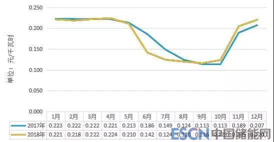 表 2-13:2018年月度集中撮合交易成交電價統(tǒng)計(jì)(單位:元/千瓦時)