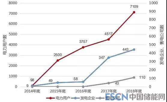 在開放的市場環(huán)境下,截至2018年12月底,共7662家市場主體完成市場準(zhǔn)入。電廠方面,共 443家電廠完成市場準(zhǔn)入,其中,水電202家,風(fēng)電153 家,光伏77 家,火電11 家,合計(jì)裝機(jī)7366.4萬千瓦;用戶方面,共7109家電力用戶完成市場準(zhǔn)入;售電公司方面,共110家售電公司完成市場準(zhǔn)入。
