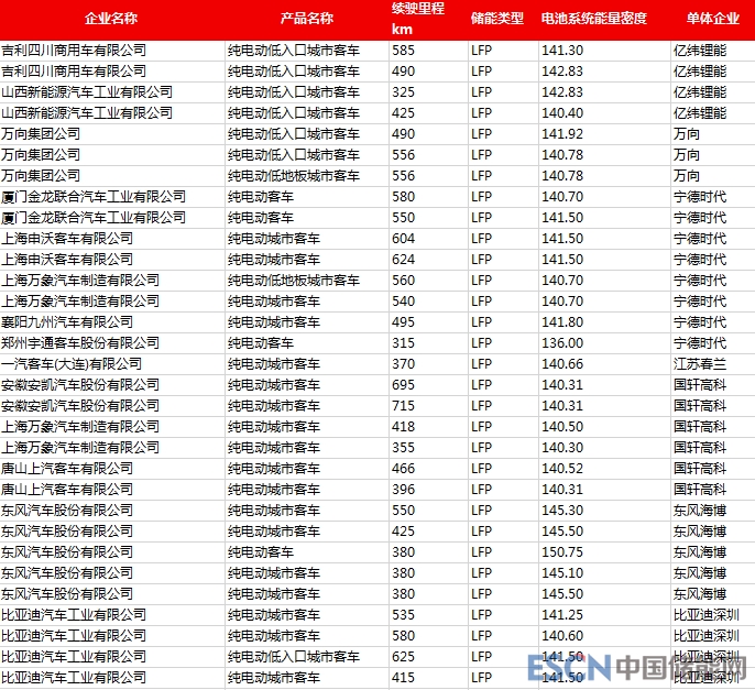 進(jìn)入目錄的32款新能源客車(chē)中,共31款能量密度在135Wh/Kg及以上,且均為磷酸鐵鋰電池,寧德時(shí)代、國(guó)軒高科、東風(fēng)海博、億緯鋰能等提供以上配套電池。但可以看到,新能源客車(chē)配套電池中,僅1款車(chē)型的能量密度超過(guò)150Wh/Kg,顯示出行業(yè)對(duì)客車(chē)的能量密度要求并不高,而是更注重其安全性與低成本。