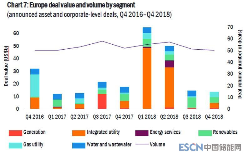 根據(jù)安永全球電力和公用事業(yè)交易咨詢負責人Miles Huq解釋,2018年歐洲P&U交易達到了1265億美元,是“歐洲并購交易突出的年份”。其中,最重要的交易是意昂集團以466億美元收購Innogy。